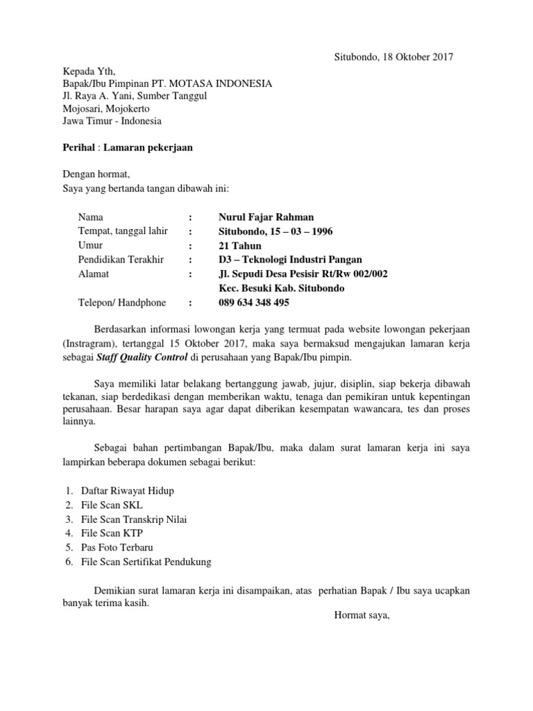 14 Contoh Surat Permohonan Kerja Atau Lamaran Kerja Lezgetreal